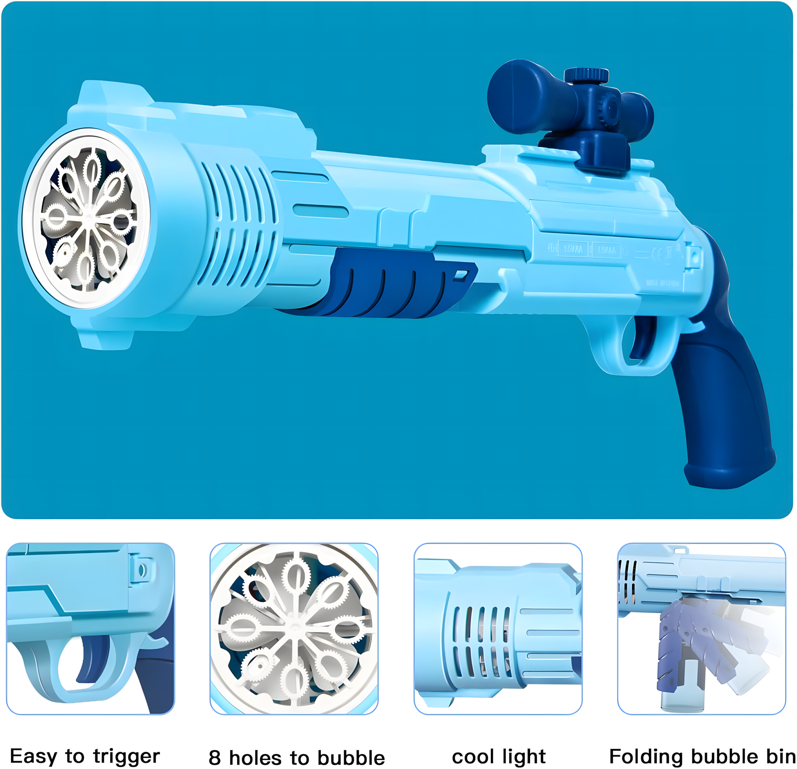 خلي اللعب يبقى مليان ضحك وفقاقيع! 🎉 مع مسدس الفقاعات الشارك الأزرق هتعمل حفلة في ثواني!