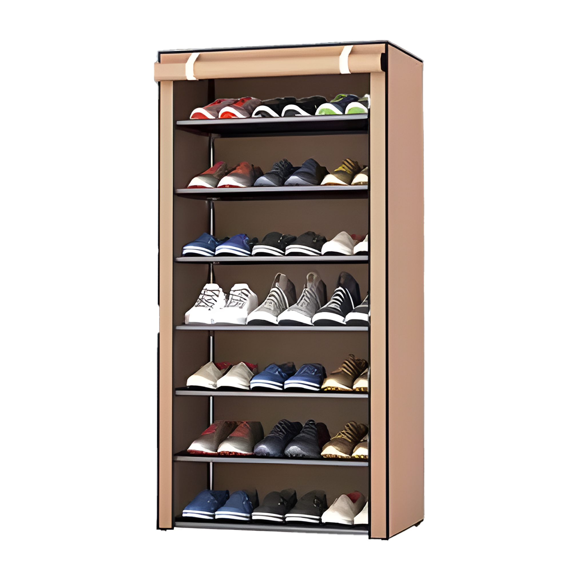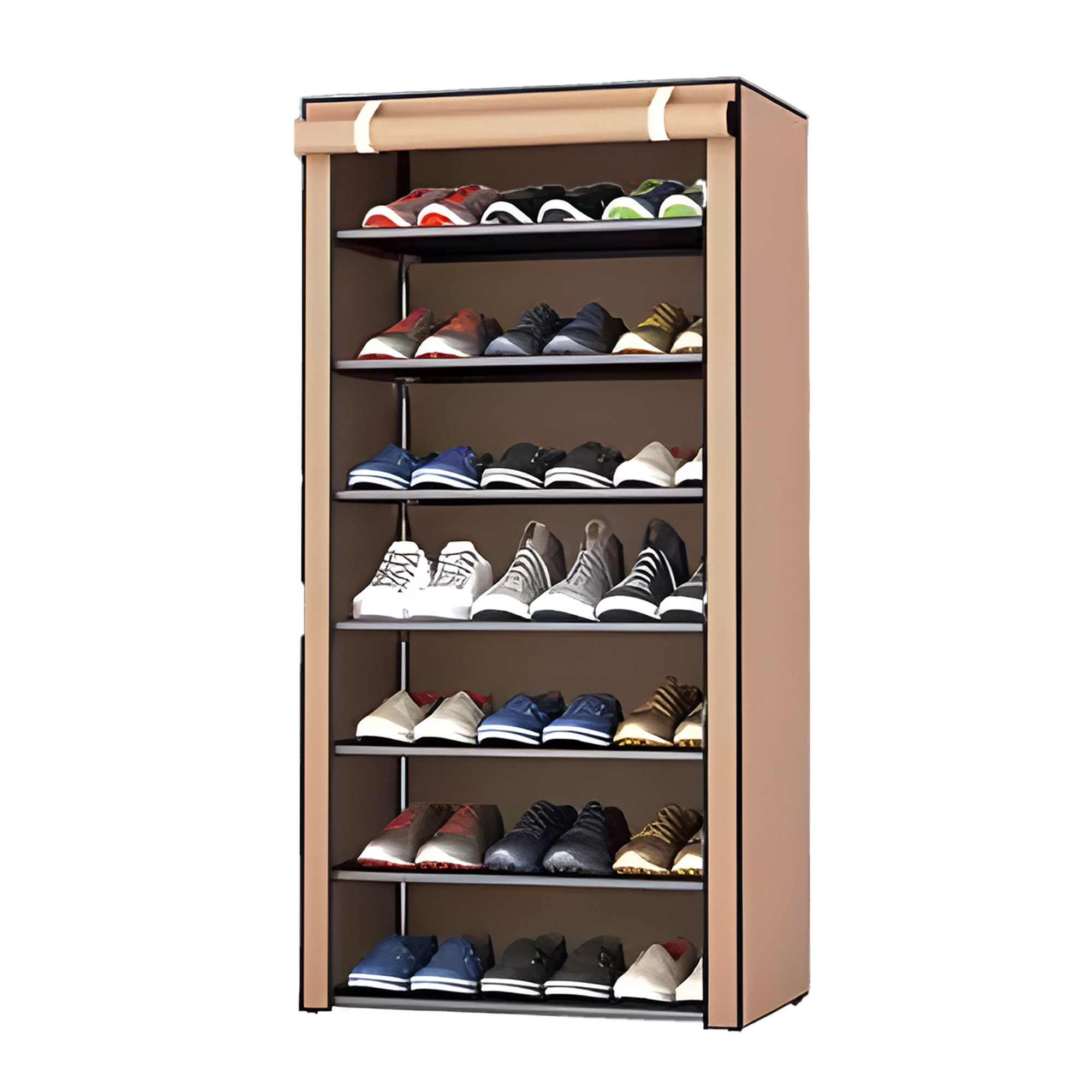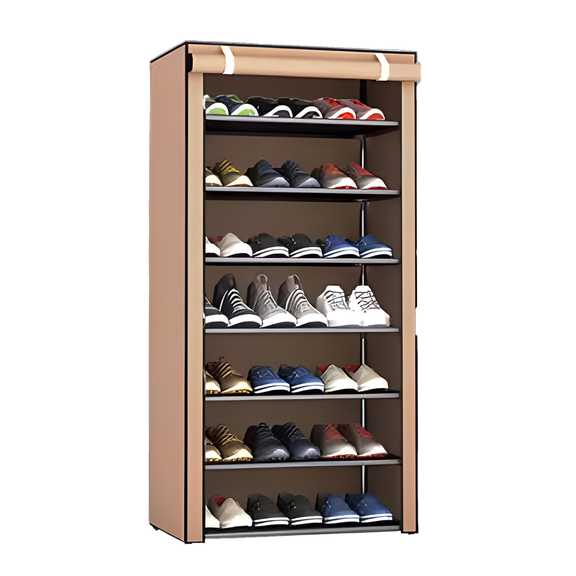 مصممة من هيكل معدني قوي يتحمل الاستخدام اليومي، ومع غطاء قماشي شيك يحافظ على نظافة الأحذية من التراب والرطوبة.