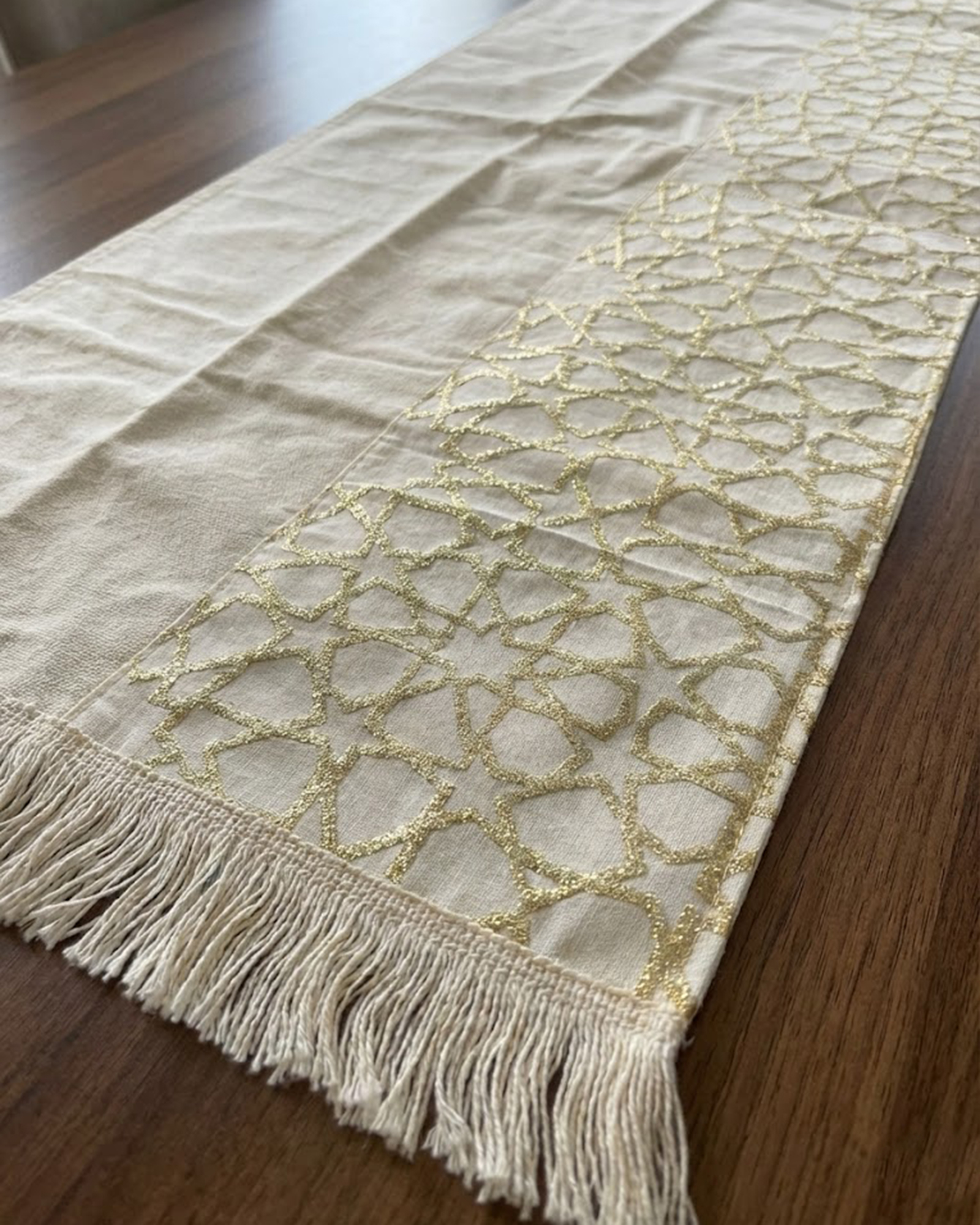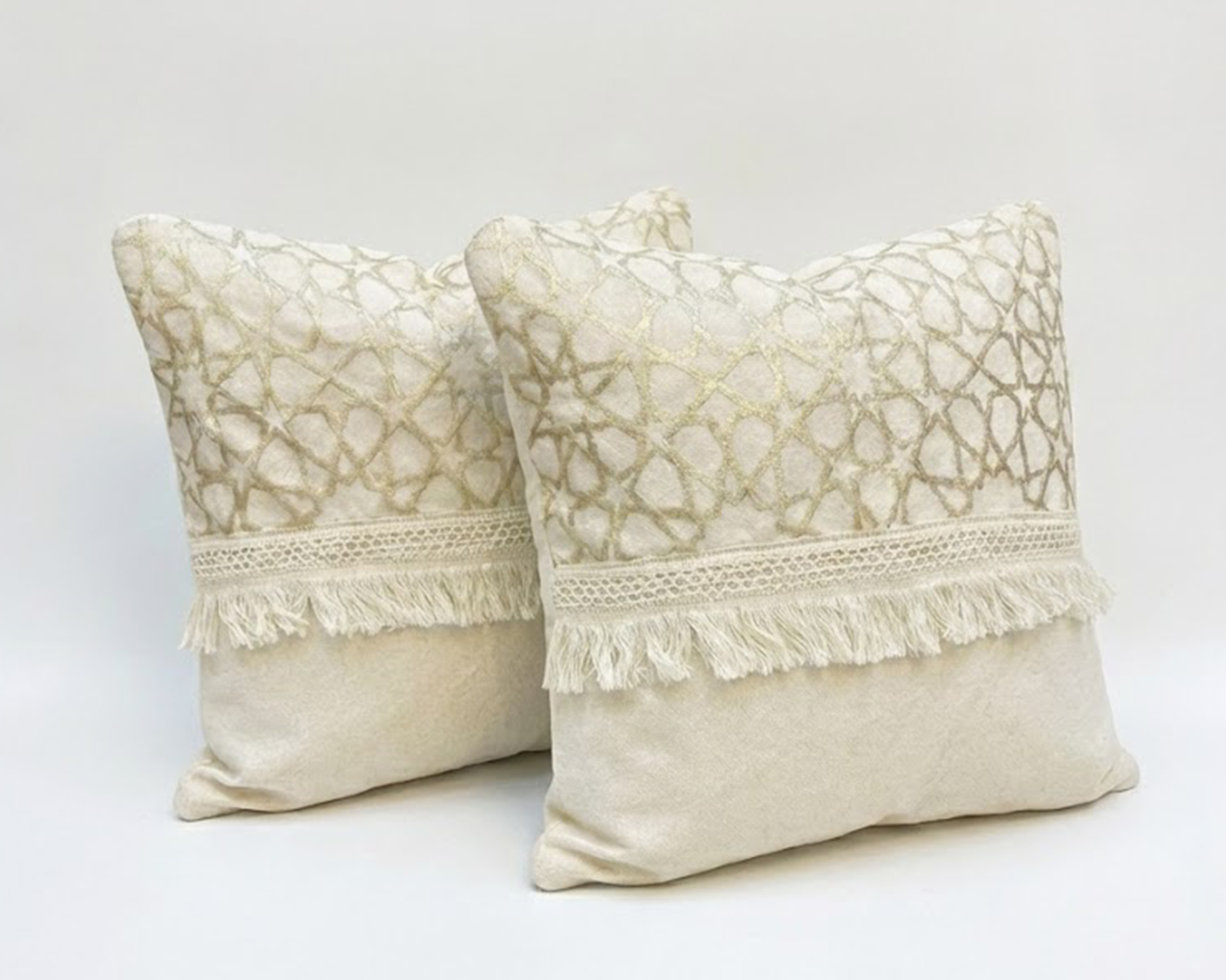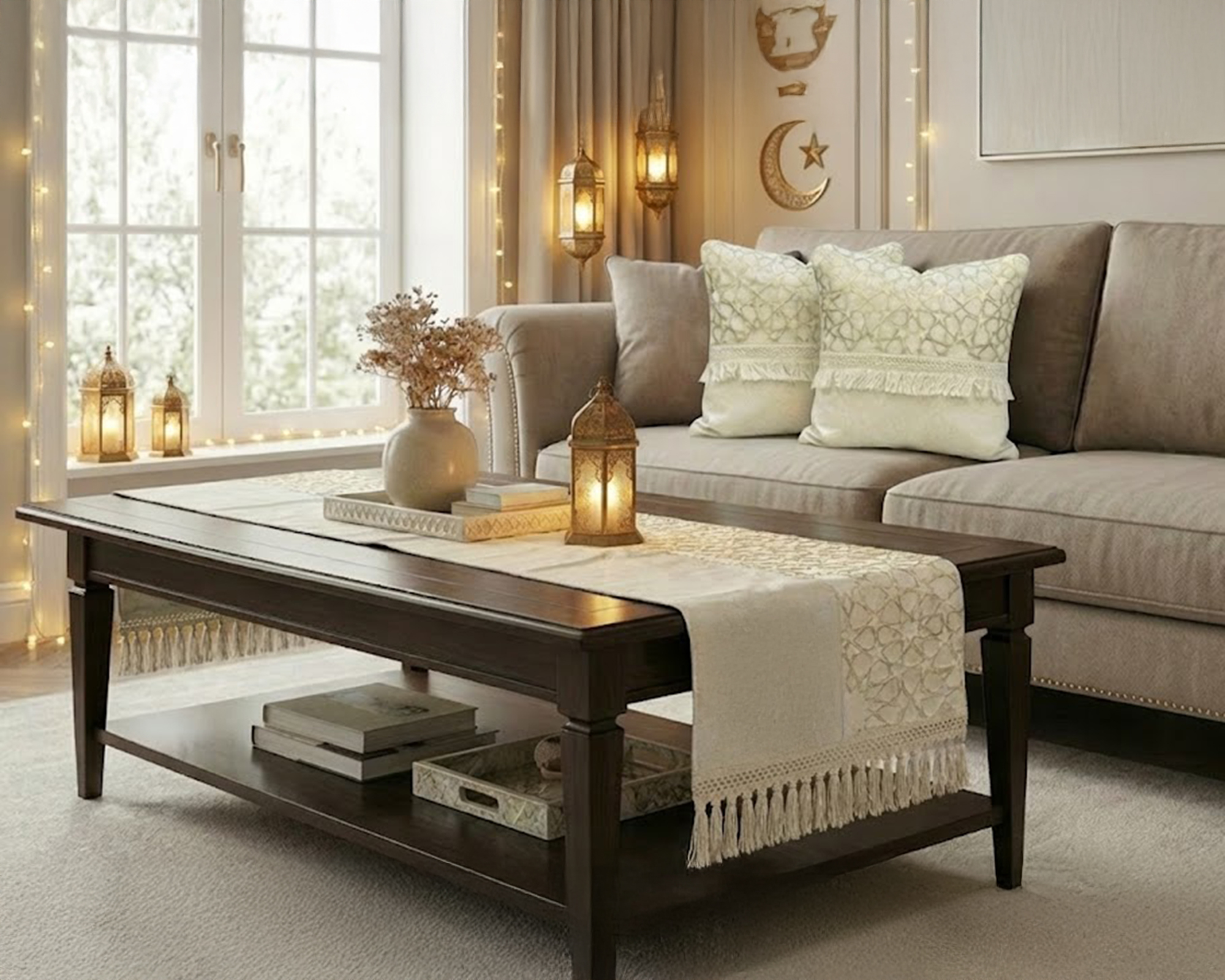 رانر مع 2 كفر كوشن بيج – نقش نجوم فخم ولمسة ديكور راقية